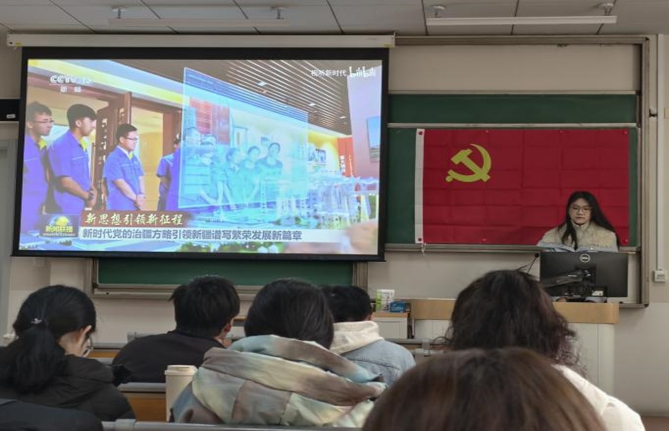 专题学习会议伊始,各支部进行了铸牢中华民族共同体意识的专题学习。1101党支部李浩月书记领学习近平总书记在中央民族工作会议上的重要讲话精神,为会议奠定了坚实的政治基调。随后,党员们共同观看了“中国人民从哪而来”系列视频,视频深刻展现了中华民族虽历经战争烽火与分裂动荡,但在经济、政治层面始终保持着的强大的内聚力将全体中国人民紧紧相连。这种根植于历史长河的强大内聚力,正是铸牢中华民族共同体意识的精神渊源,指引着全体党员与各族人民始终同心向背、共赴复兴征程。