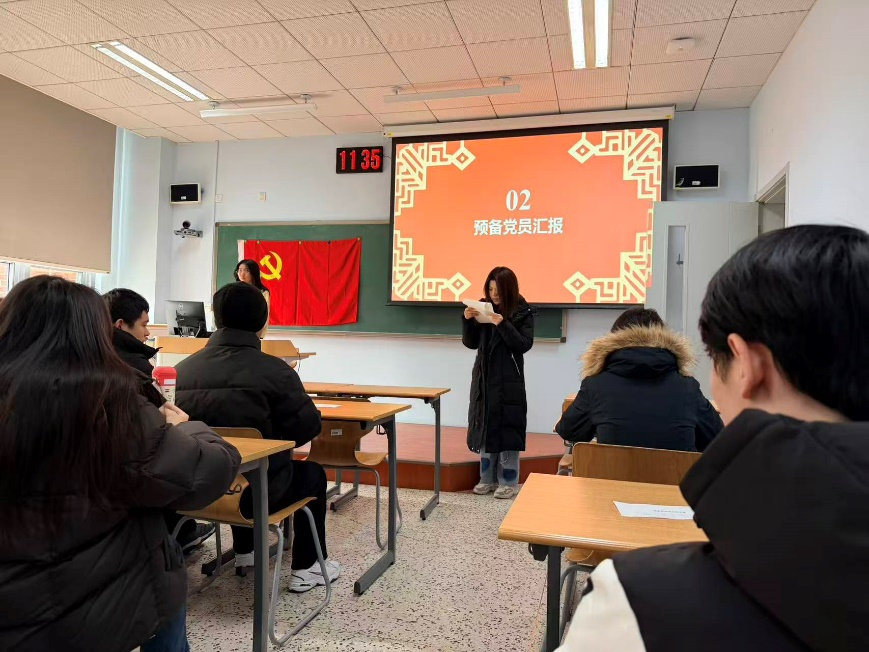会上,预备党员向支部大会作转正汇报。她从思想政治、理论学习、学习科研、志愿服务以及日常行为规范等方面,系统回顾了预备期一年来的思想成长与实践表现。高梦雨同志表示,在预备党员期间,能够持续深入学习习近平新时代中国特色社会主义思想,认真参加党组织的各项学习教育活动,不断提升政治理论素养和思想觉悟,在思想上、政治上、行动上始终同以习近平同志为核心的党中央保持高度一致。同时,她结合支部党员在预备党员接收大会上提出的意见建议,逐条进行对照检查和整改说明,体现出较强的自我反思能力和进取意识。
